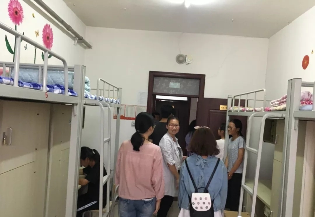 老师们进入宿舍后,首先对宿舍的卫生及安全做出详细的检查,希望同学们能做到干净整洁。一间间干净整洁的宿舍,显示了同学们阳光向上的生活态度与睿智从容的生活气息,对此老师们给予表扬并鼓励同学们继续保持。接着,老师对同学的日常生活进行了询问,事无巨细的关怀让远在他乡的同学感受到了如家般的温暖。最后,老师希望同学们能够继续保持整洁的宿舍环境,营造良好的校园生活氛围。