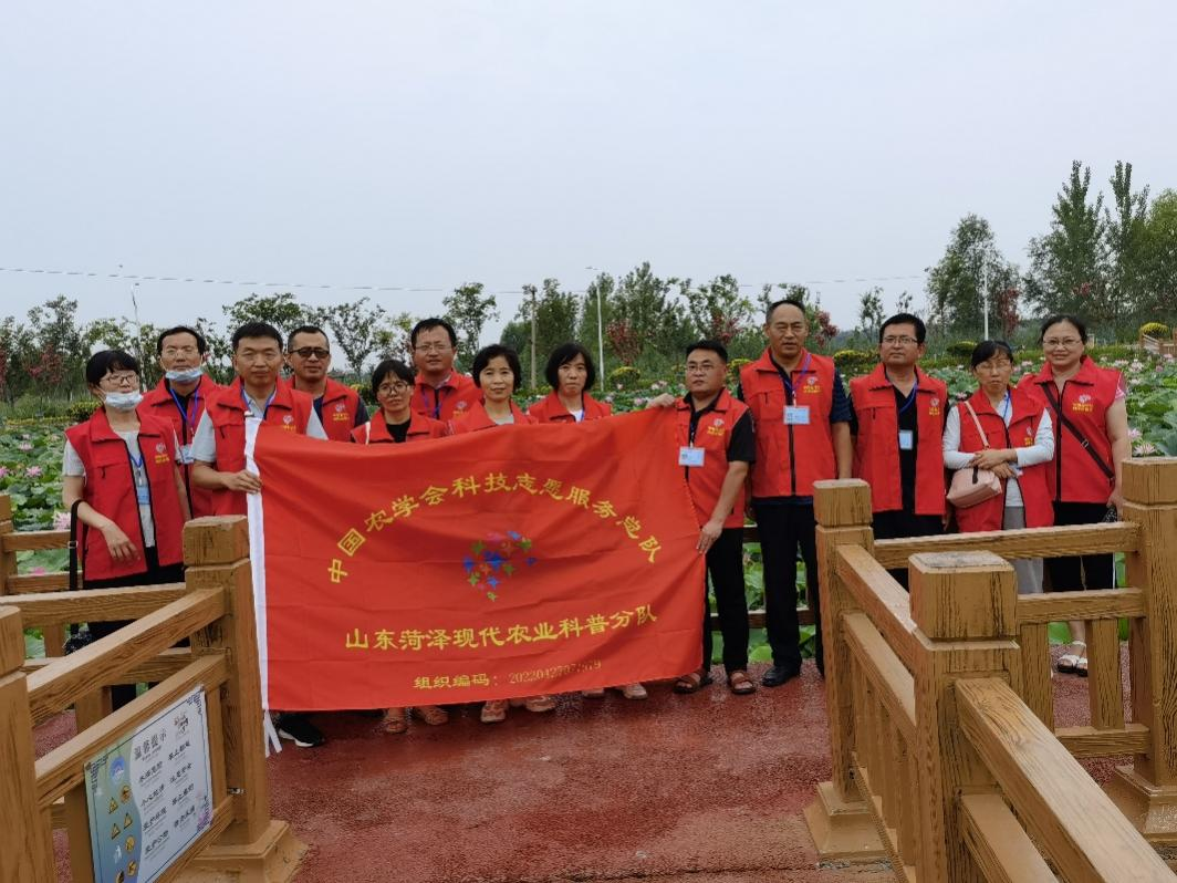 由太阳集团tyc4633的博士、教授组成的中国农学会科技志愿服务总队山东菏泽现代农业科普分队一行15人于2022年7月3日前往菏泽曹县万亩荷塘,进行现场研讨及科技指导活动。