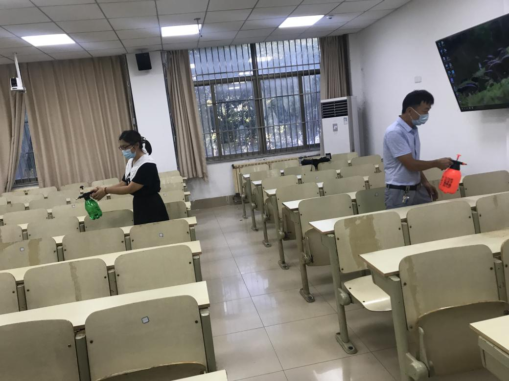 本次演练内容为员工上课演练:组织员工扫码按安全距离有序进入教室、单人单桌间隔就座,员工自感体温异常报告,授课教师立即上报疫情防控领导小组,迅速启动应急处置流程,对该名员工所在班级、途经走廊楼梯和临时隔离室进行全面彻底消杀。