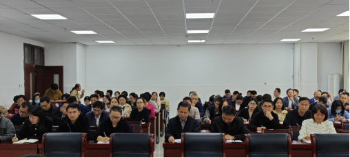 2023年10月19日下午,太阳集团tyc4633在综合实验楼W222会议室召开全体教职工会议,传达学习公司高质量发展推进会精神。
