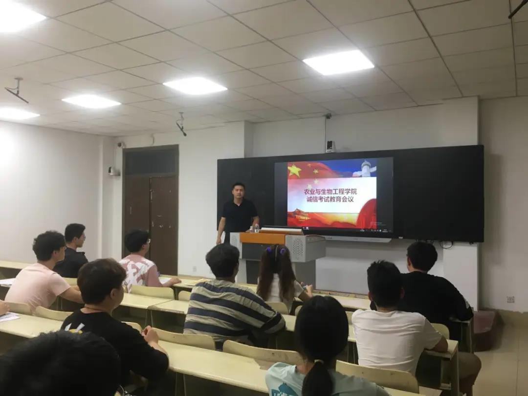 会议上,辅导员谭政强调了要坚决杜绝考试作弊现象,并结合《员工手册》讲述考试违纪处理条例,此外还提醒同学们一些与考试相关的注意事项并强调了几点考试阶段的纪律要求和规定:一、认真复习,积极备考。谭老师指出,考试是对大家这一学期学习成果的检验,需高度重视,调整心态,积极准备。二、诚信考试,杜绝作弊。告诫所有同学不要存在任何侥幸的作弊心理,要实事求是、严肃考纪。希望同学们考前努力学习,以诚信的态度迎接考试,谨记考试纪律,切莫因小失大。随后,员工代表上台发言,呼吁同学们树立诚信考试、诚信做人的意识,建议同学们调整心态、规划复习安排,心无旁骛地迎接本次考试。